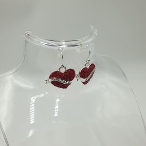Guess Silver & Red Rhinestone Heart Pendant Hook Earrings
