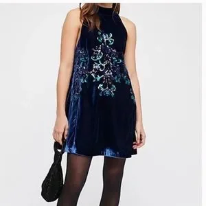 Free People Blue Velvet Dress NWT