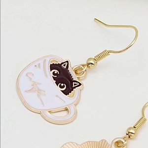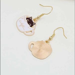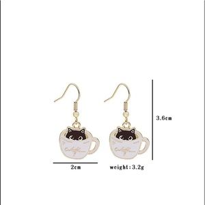 ๐ Cat coffee cup drop earrings