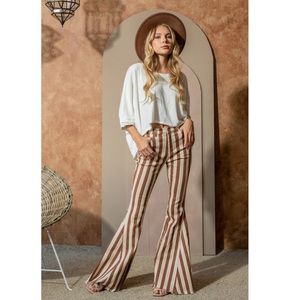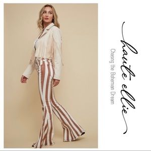 BOHO BABE BOLD-Striped Denim Flare Jeans