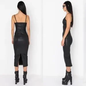 Super rich faux leather midi dress. Fabric has a nice amount of stretch. Dress is brand new and unworn.