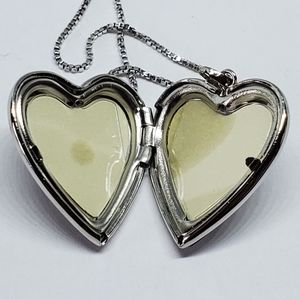 SOLD Sterling Silver Heart Locket Matte Diamond Accent Necklace
