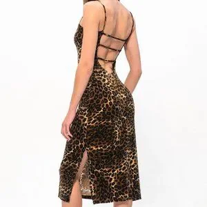 Vintage 2000s Leopard Dress Size: 1/2/4 ( due to the stretch of material it could fit all the way up to size 5) Condition: 10/10 Flawless beautiful 2000s soft toned dress that you can be dress up with a pair of heels or dressed down with a pair of sneakers! Either way this one of kind dress hugs you in all the right places showing off your silhouette. Model: 5''7