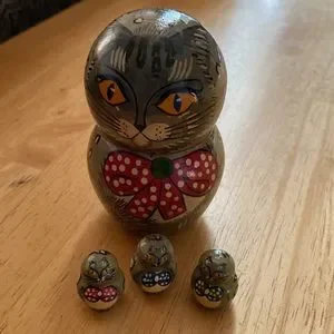 Russian 1991 Moscow Nesting dolls Mama cat set 4 pcs. Hand painted in Russia 3,5” vintage