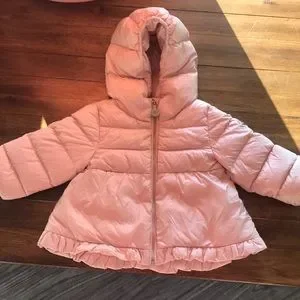 Childrens cream colored puffer jacket with one repair as shown in picture