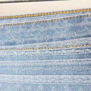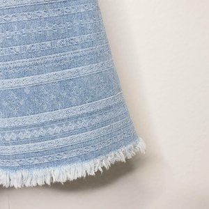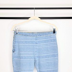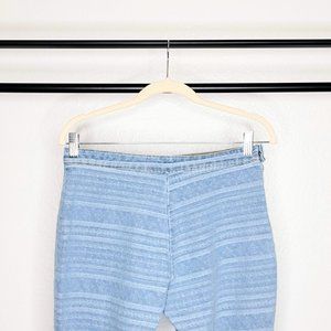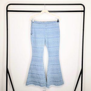 Pol TKP113 Striped Denim Flare Leg Raw Hem Blue Light Wash Jeans Size Medium