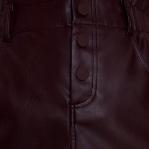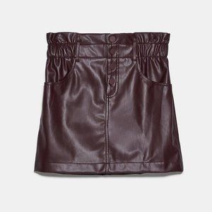 NEW Zara High Waist Paperbag Button Front Faux Leather Mini Skirt Burgundy Plum