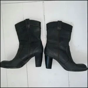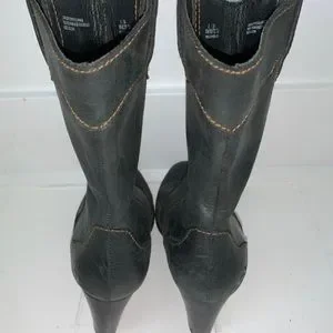 Western style boots, an off black shade of leather. In great shape other than small marks on heels. Comfy padded soles. Perfect for dancing.
