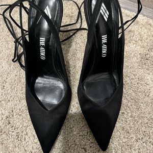 Gorgeous and trending black satin heels from the attico. EU size 40.5. Cuff mark on the back of shoes (from grass as seen in pics ) but otherwise great condition.