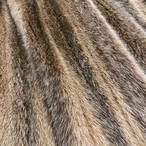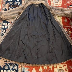 Wide wing collar and rolled cuffs - original turn up is 3" for a 26” sleeve from neck but I removed the stitches and wear with a smaller roll for a more modern, oversized fit. Could be worn with no roll for a 29” sleeve on a taller lady. Collar is fur on both sides and can be worn wide, turned up, or rolled about half way down and retains the shape/placement when styled.