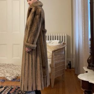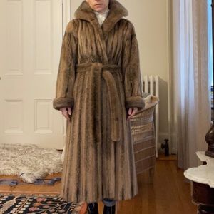 Bergorf Goodman Vintage Blush-Black Cross Mink Full Length Fur Coat