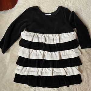 Hanna Andersson Velour Dress Size 90. Black is velour, cream white is cotton feel. Quality/heavy material. EUC! 🖤