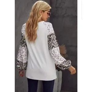 Leopard print Top off white and tan taupe 1 Large left Brand new boutique