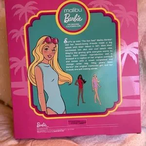 Malibu Barbie and her beach-loving friends made a big splash with their debut in 1971, and they’re still making waves 50 years later. In celebration of their 50th anniversary, this collectible gift set features classic reproductions of three iconic dolls. This Malibu Barbie gift set includes Barbie, PJ and Christie reproduction dolls, each wearing a replica of her original swimsuit
