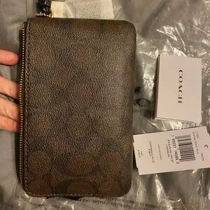 NWT Double Corner Zip Wristlet In Signature Canvas