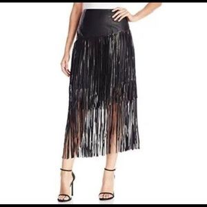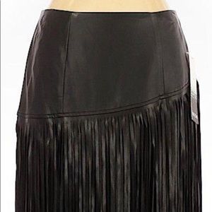 Kensie Faux Leather Black Fringe Midi Skirt S