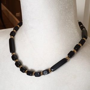 Trifari Black & Gold Bead Necklace. Vintage