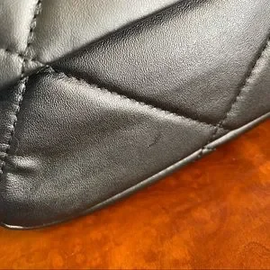 *READ Black Leather Flap Ombre Quilted Chain Crossbody Top Handle Purse Bag S4