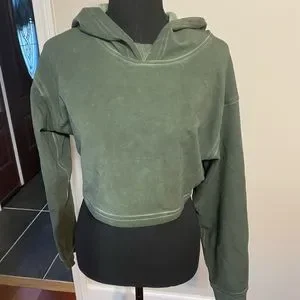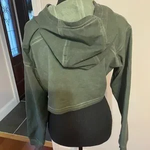 NWOT - To Dye for collection ! Lululemon all your cropped hoodie in tye dye washed green. I bought it cut off the tags and wore it once . It is a little to cropped for me to pull off . The length from the back of the neck to hem is 14” approximately. A little to short for my preference. Relaxed fit - oversized and four way stretch.