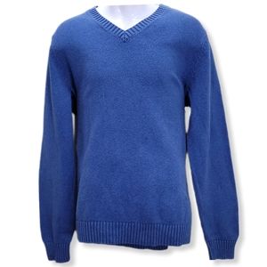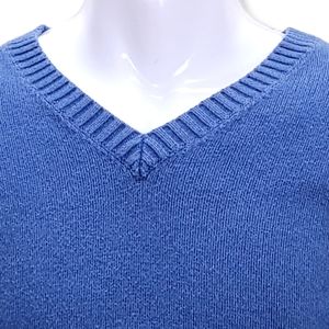L.L. Bean Mens L Tall Sweater Blue Long Sleeve V-Neck Cotton Stretch Pullover