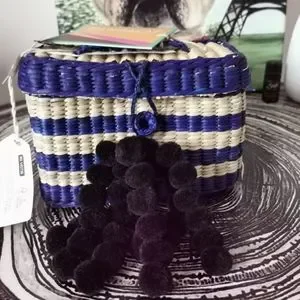 Nannacay Straw handbag Tote w Pom poms Beach bag Brand New w tag Handmade Travel