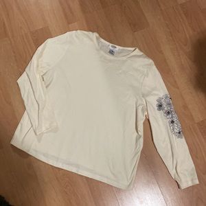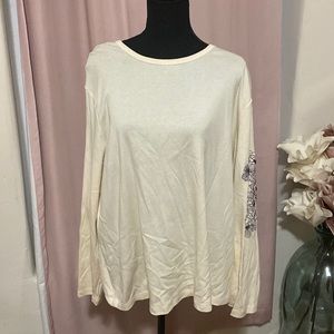 Cream Cotton shirt size 3X Talbots woman. Lovely flower detail on the sleeve with beads to make a statement! Ready for its new home!