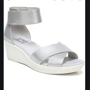 New in the box, Naturalizer Riviera sandals in silver frost. Comfortable and easy on and off. Love them but need to downsize and have another similar pair. Smoke free, pet free home. More details coming 1/7/2022
