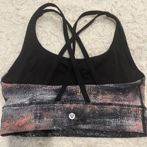 White, black, grey and pink cosmic Lululemon sports bra, size 6