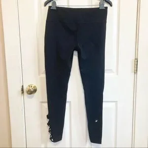 Glyder High Rise Black Criss Cross Lattice Hem Leggings Size Medium