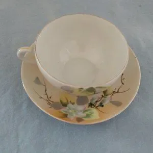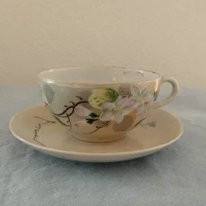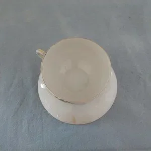 I am certainly not an expert on tea cups by any means so please look at all pictures. Cup measures 3.5" across and saucer is 5" across
