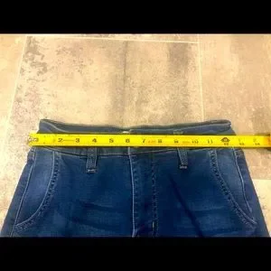 These are jogger style super cute jeans that are soft and have that fab distressed look. These are in excellent condition. There are no stain or odors. These are awesome!
