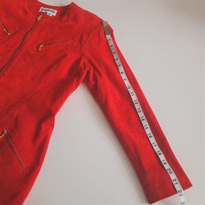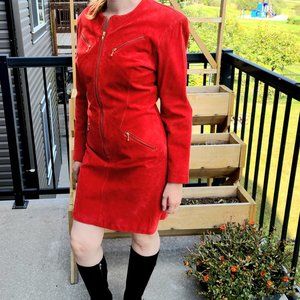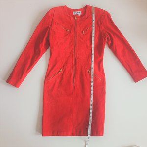 Vintage Bagatelle suede red dress with gold zippers.