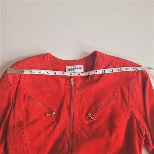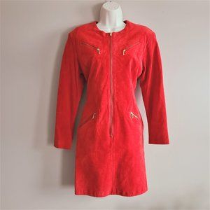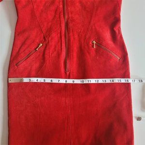 Beautiful vintage Bagatelle suede red dress with gold zippers. Fully lined. Size vintage 8 that would fit modern Small. Please see measurements on the photos. Excellent condition.