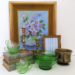 This charming vintage piece has grooves on the sides of the frame for a tray, and also a hole on the back for a wall hanging. It does have a slight warp to it ( see pictures) so it might work best as a wall hanging. Otherwise excellent vintage condition.