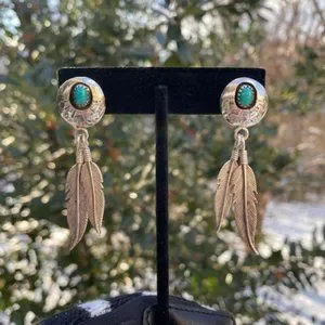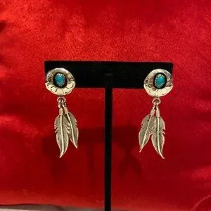 VTG Fred Weekoty Zuni Sterling Turquoise Feather EARRINGS