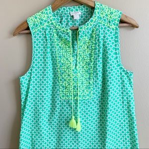 J. CREW lime embroidered top sleeveless neon green boho tassels size 0 preppy