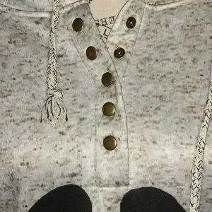 sweatshirt with five snaps for closing, greyish, brown and white mix colors, worn a couple times