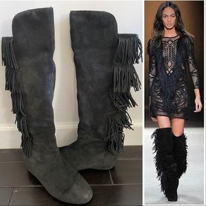 Isola Tavora Black Fringe Tall Wedge Boots Womens Size 8.5