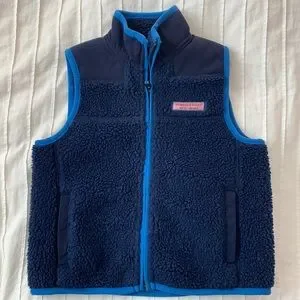 Retro pile boys vest - navy with blue trim