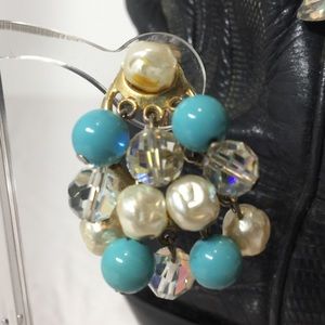 Turquoise and rhinestone colored costume necklace, bracelet, clip on earrings
