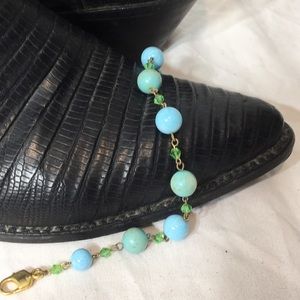 Turquoise colored and rhinestone necklace clip on earrings bracelet. Used. Great gift. Country chic, western, elegant