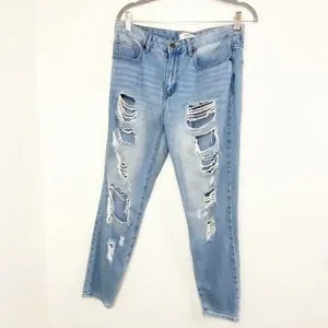 Description: These are pretty distressed. Perfect if you like the big holes to where your knee would be showing. Size 27. There is no care tag.