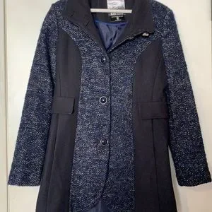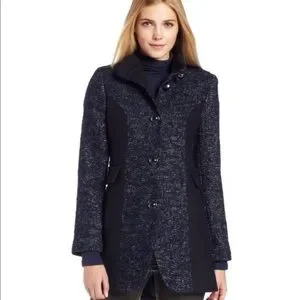 Kensie Women’s Navy Blue Tweed Wool Coat