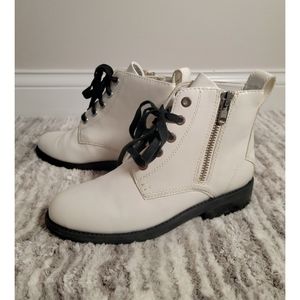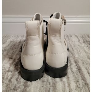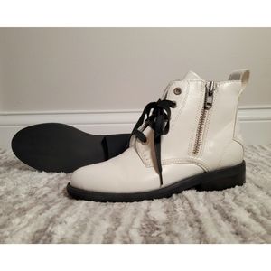 Abound white vegan faux leather ankle boots with black laces and soles in womens size 8. Purchased and worn inside a few times, but I didn't feel like I could pull off the look 🤷♀️. They've been boxed and stored in my closet since. My loss is your gain!!