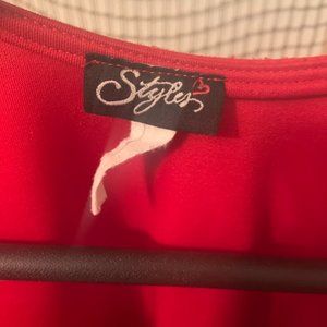 Red Short Sleeve Blouse Front Short, Back Long Peplum