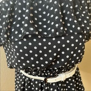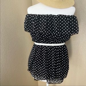 Beautiful and romantic Black top with white dots and a white belt at the waist. Size M,it is in perfect conditions. Never been used.