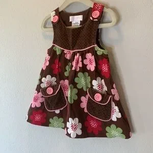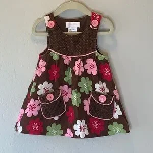 Brown corduroy dress with floral design by Bonnie Baby. Does not come with the shirt that matched. Size 18 month. Cutest button accent and front pockets.