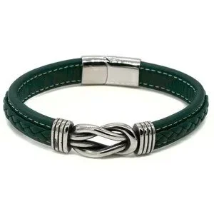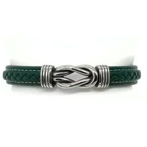 Men's green leather bracelet love knot magnetic clasp.