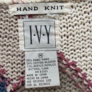 Vintage IVY Sweater Button Down Hand Knit Country Design Size Medium