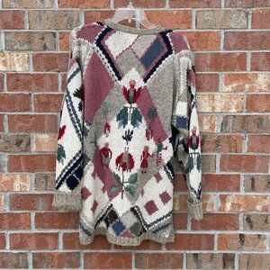Last Chance Vintage IVY Sweater Button Down Hand Knit Country Design Medium Y2K